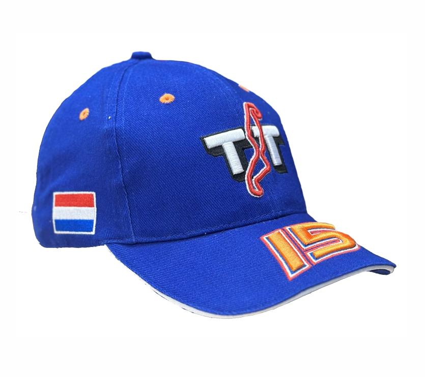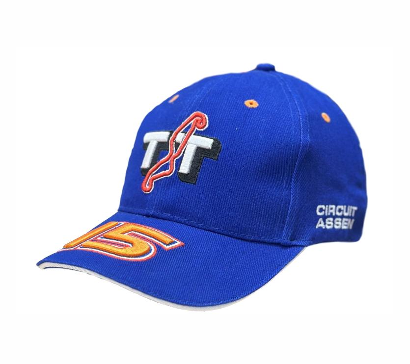 De 2015 editie van de TT-ASSEN petten. Gemaakt van polyester/katoen in een universele maat. Aan de achterzijde zit een verstelbare riem om de pet strakker in omvang te maken. Onderdeel van de "Official TT- Merchandise".